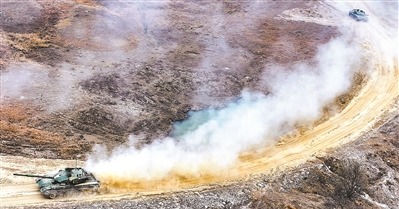 春日,陸軍某旅組織實彈射擊考核。圖為戰車快速機動。黃振宇攝