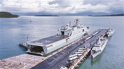 據了解,此次長白山艦靠泊,是中柬云壤港聯合保障和訓練中心掛牌運行后,首次保障中柬聯合演習。抵港后,各任務分隊與柬方有關部門密切協同,開展卸載作業,并按計劃向各自演習地域集結。(周自航 郭澍東)