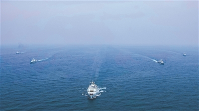 初夏,海軍某部組織多科目訓練。圖為艦艇編隊向目標海域航行。張 楚攝