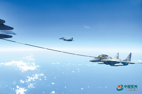 此次聯訓中,我運油-20飛機和埃及空軍米格-29戰機進行空中加油訓練。余紅春 攝