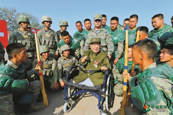 官兵同周全弟老英雄交流。唐瑞杰攝