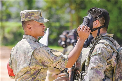 前不久,陸軍某旅開展專業技能考核。圖為考官檢查戰士防毒面具穿戴情況。劉志勇攝