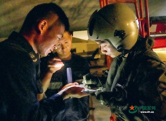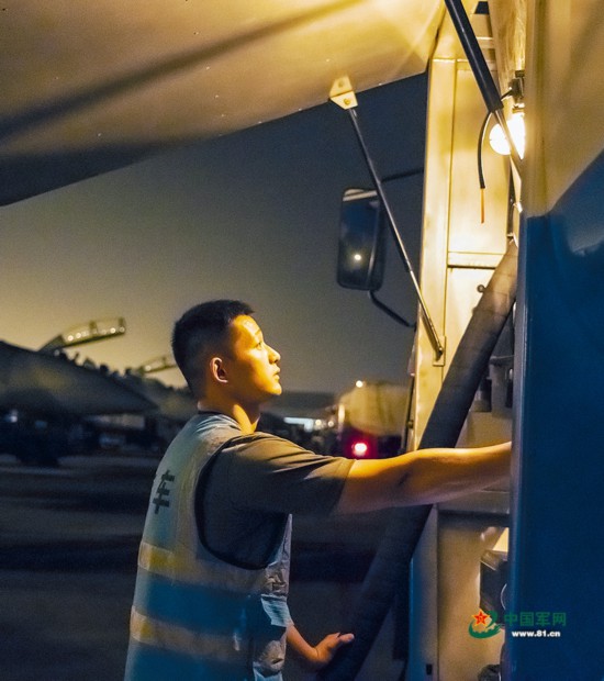 云霧散盡,天氣狀況轉好。機務官兵在機場耐心等待,天邊星光閃耀,轟鳴聲由遠及近,戰機按時返航。