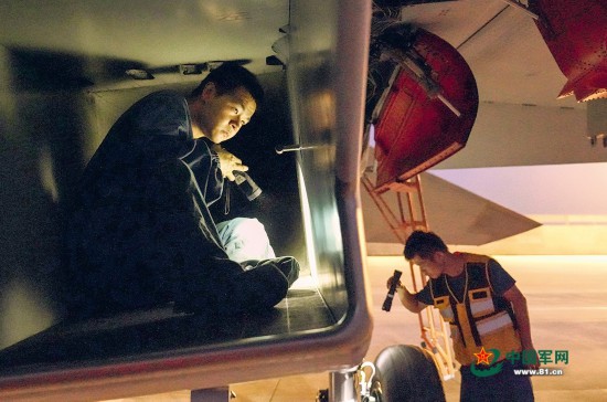 當飛行員到達時,機務官兵已完成相關工作,在飛機前整齊列隊?!帮w行員同志,飛機準備完畢,請接收!”機械師報告后,陪同飛行員檢查飛機。