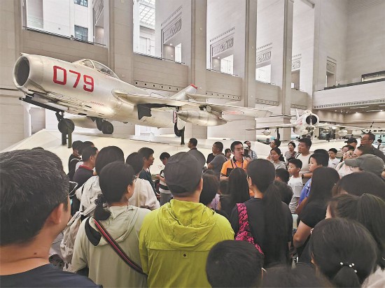 在軍博開放日,來自五湖四海的游客在工作人員引導下,走進這座雄偉高大的建筑,也走進了以兵器為橋梁紐帶的中國革命發展史。