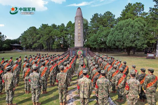 瑞金市人武部組織預定新兵在葉坪革命舊址紅軍烈士紀念塔開展現地教學。葛振奇攝