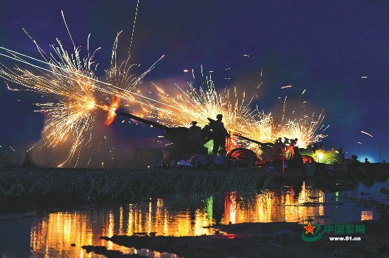 與此同時,部署在陣地前沿的高炮分隊嚴陣以待?!鞍l射!”指揮員話音剛落,一枚枚炮彈破膛而出,在天地間織出一張火力覆蓋網,成功摧毀目標。